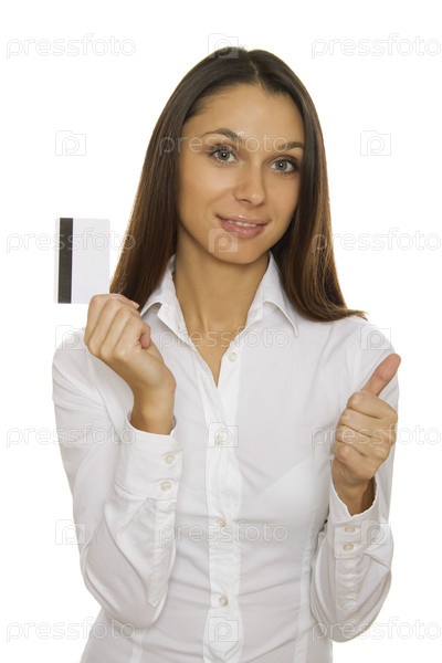 Девушка с кредитной картой на белом фоне