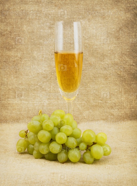 Чаша и виноград на фоне саков