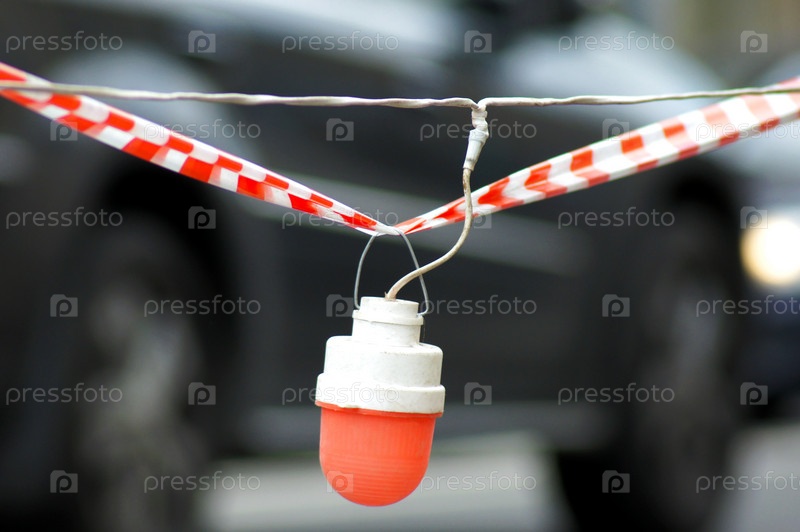 Защитная лента на дороге с красным сигналом