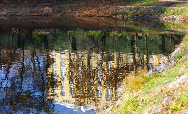 Здание, отражающееся на поверхности пруда