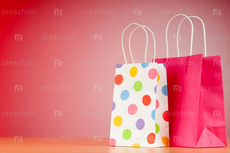 Две сумки для покупок на розовом фоне