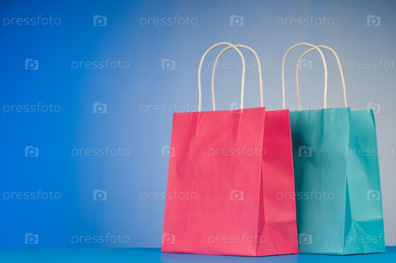 Две сумки для покупок на голубом фоне