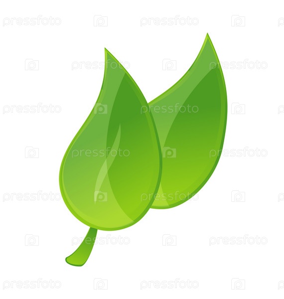 Два зеленых листка на белом фоне