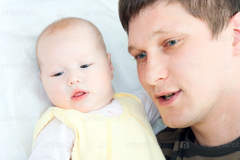 Счастливая семья: отец и ребенок - играют и улыбаются