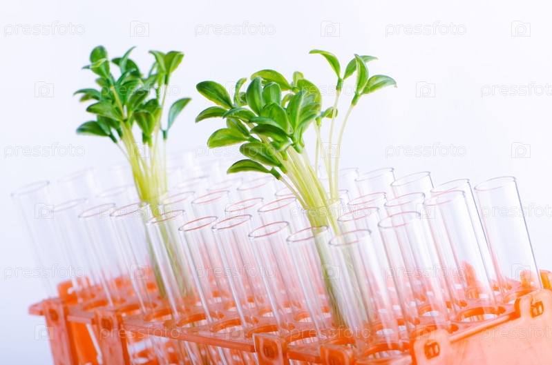 Эксперимент в лаборатории с зеленой рассадой
