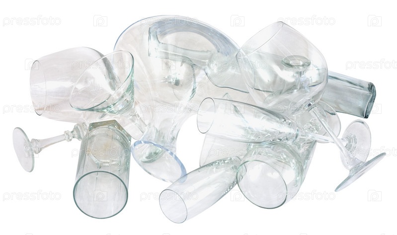 Стеклянные бокалы,сваленные в кучу