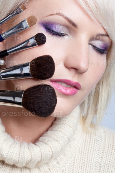 Молодая женщина с визажными кистями