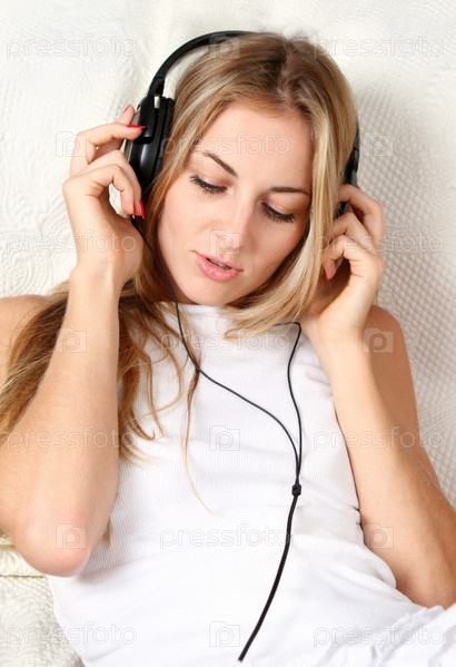 Девушка в наушниках слушает музыку