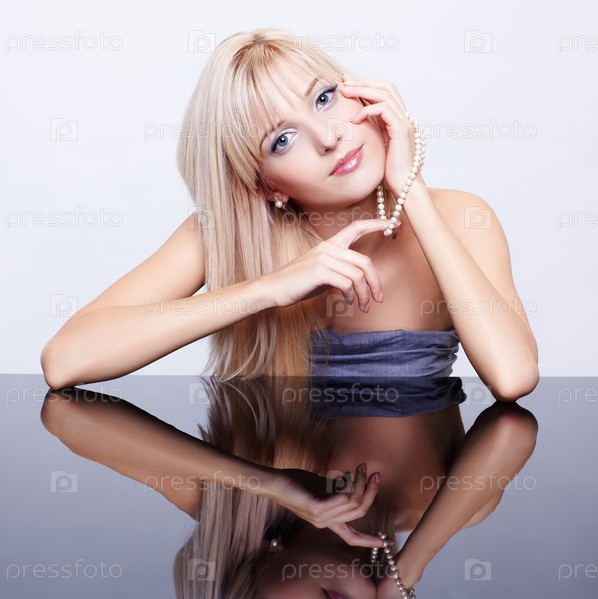 Портрет молодой гламурной блондинки с ниткой жемчуга