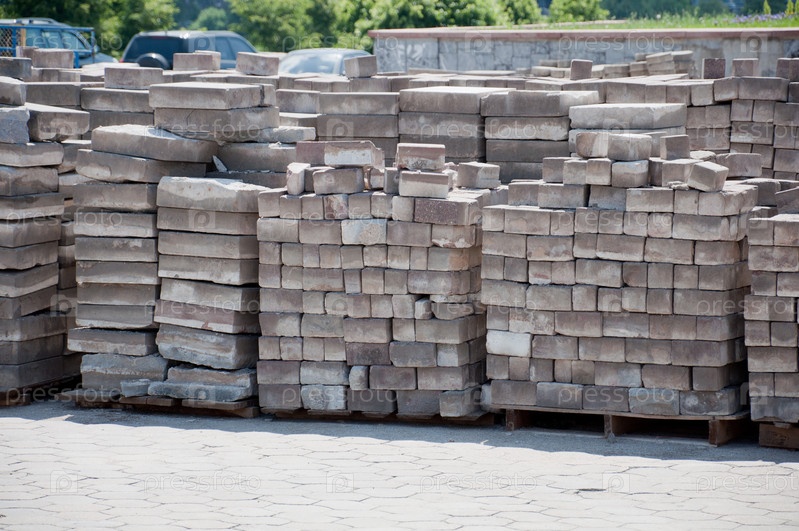 Штабели камней для отделки тротуаров
