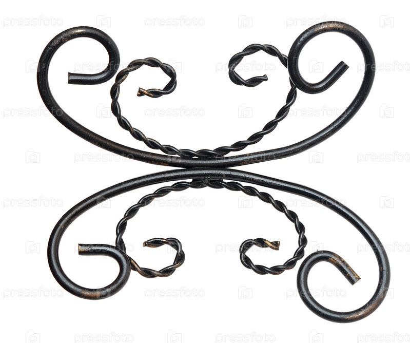 Часть декоративного черного кованого железа на белом фоне