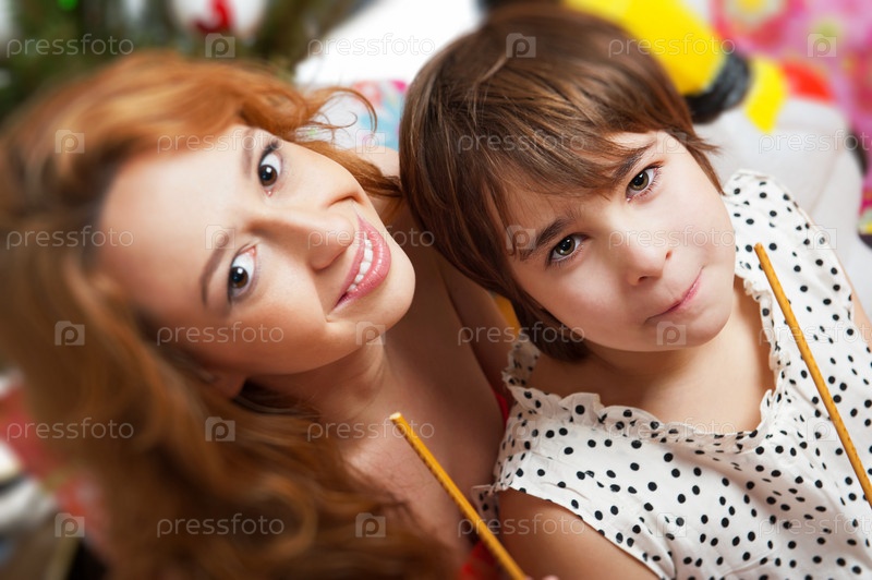 Мать и дочь сидят на полу
