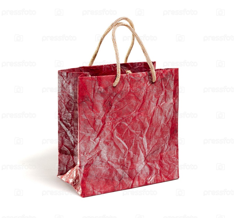 Небольшой пакет из мятой бумаги на белом фоне