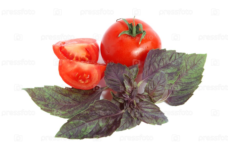 Помидоры и базилик на белом фоне