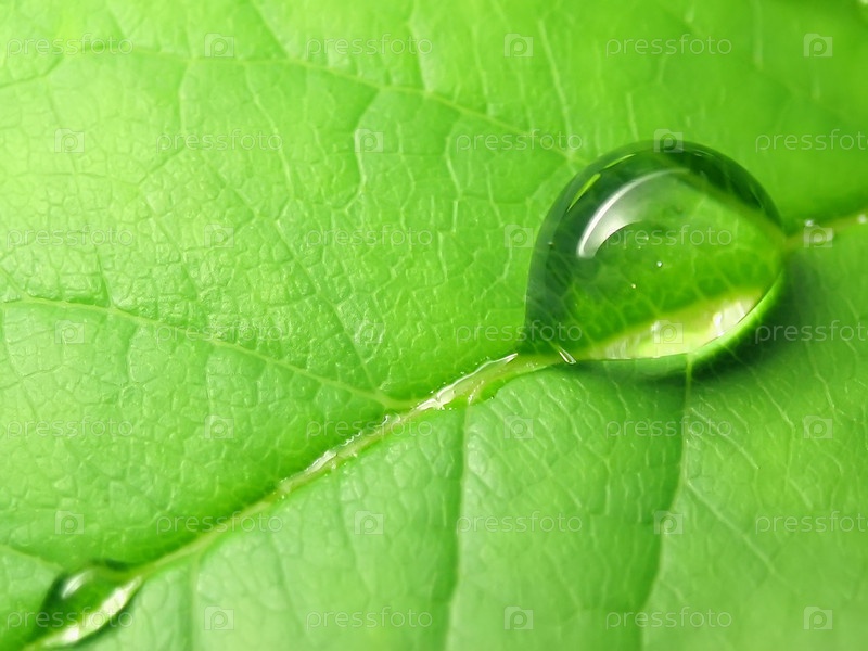 Близкий взгляд на капли дождя на зеленом листе