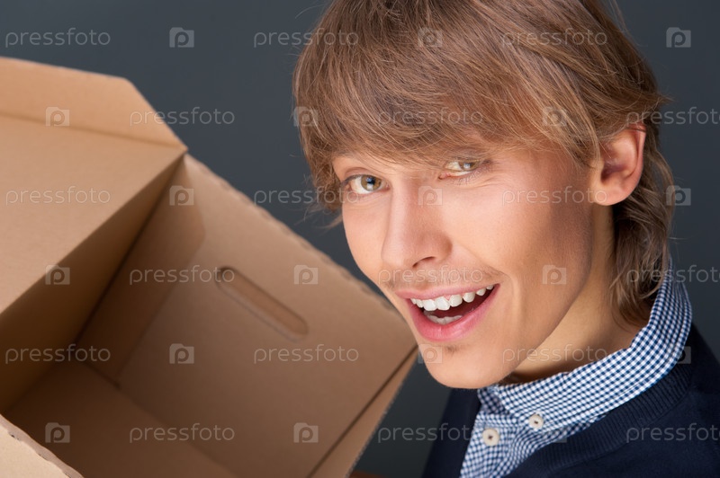 Молодой человек с картонной коробкой