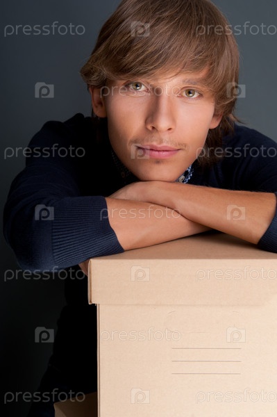 Молодой человек с картонной коробкой