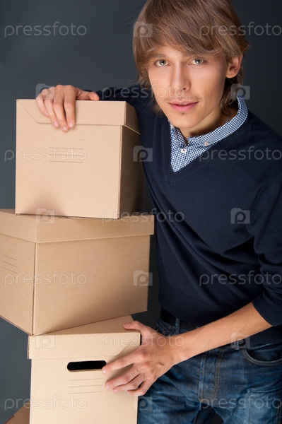 Молодой человек с картонными коробками