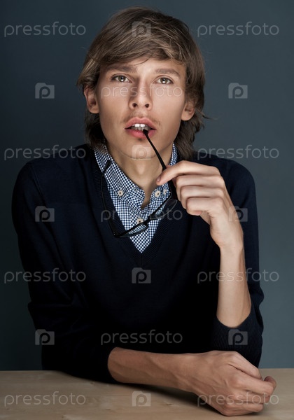 Серьезный молодой человек сидит за столом