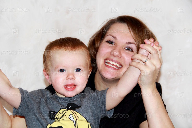Милый годовалый ребенок с мамой