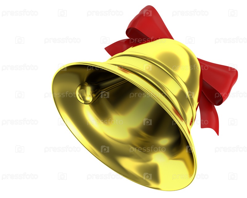 Рождественский колокольчик с красным бантом на белом фоне
