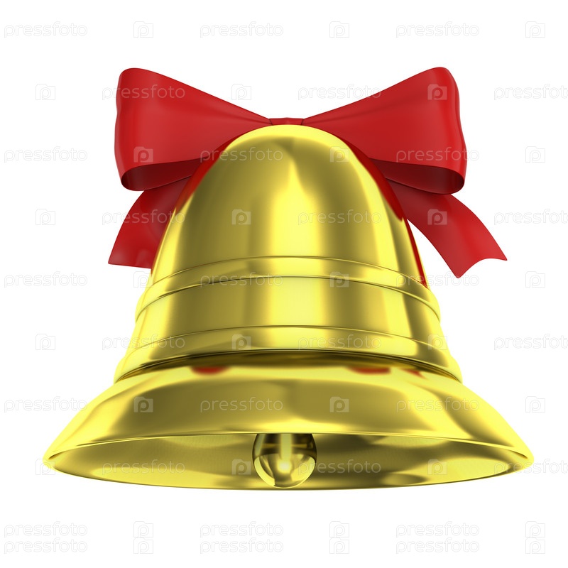 Рождественский колокольчик с красным бантом на белом фоне