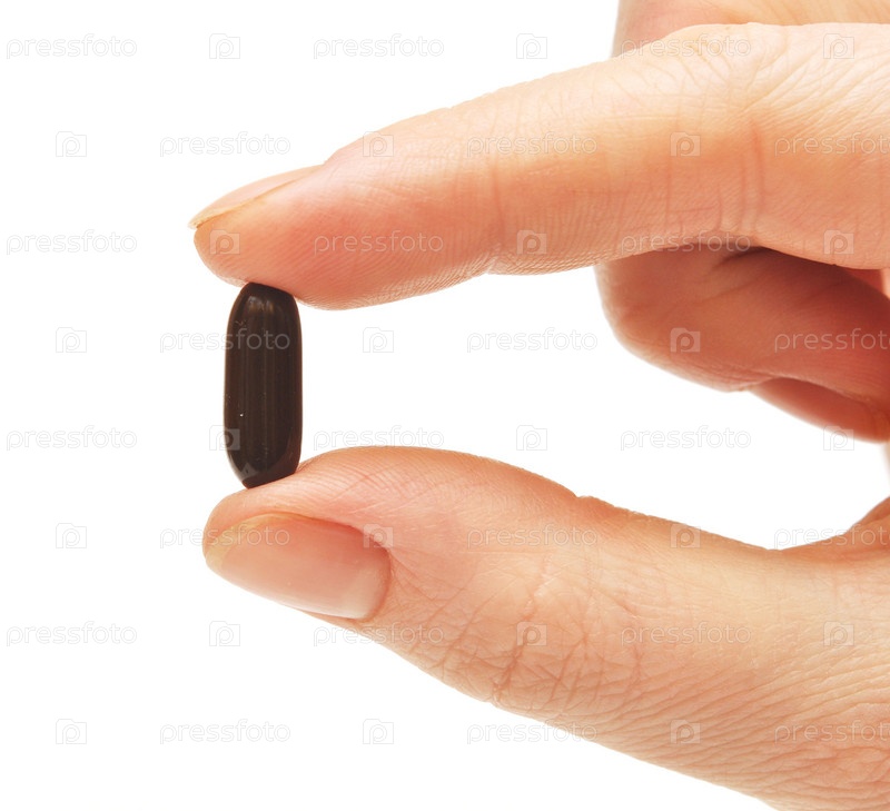 Пальцы с капсулой на белом фоне