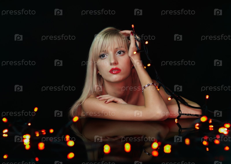 Девушка и новогодняя гирлянда