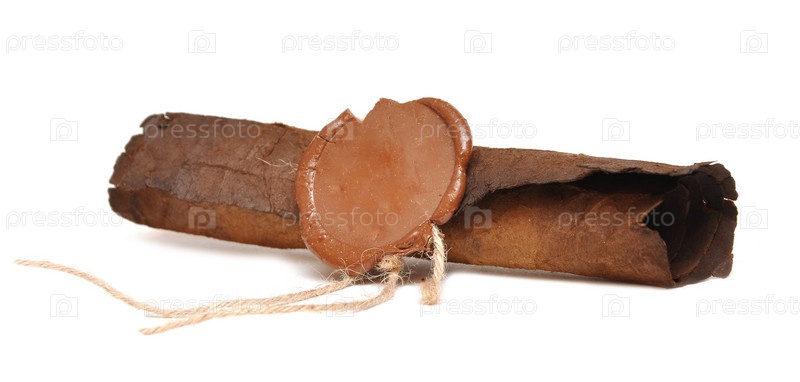 Старая бумага с сургучной печатью на белом фоне