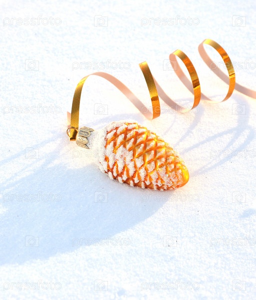 Елочное украшение на снегу