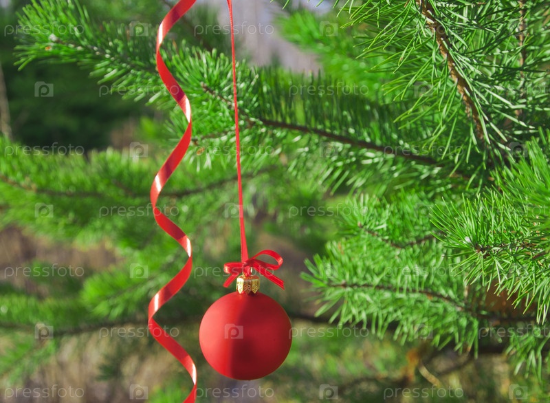 Елочный шар на сосновой ветке