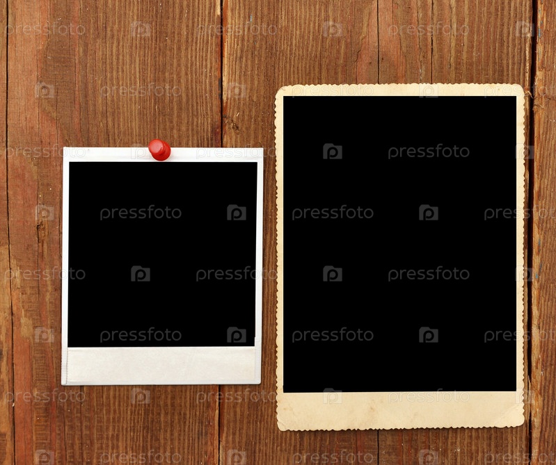 Старинная и моментальная фотографии без изображения в качестве фона на деревянной поверхности