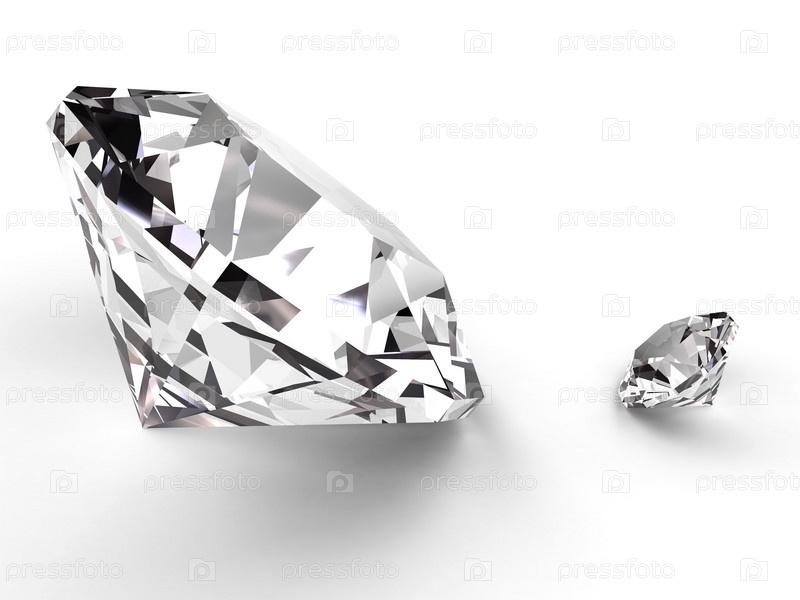 Большой и маленький алмаз, изображенный с мягкими тенями на белом фоне. высокое разрешение 3D-изображение
