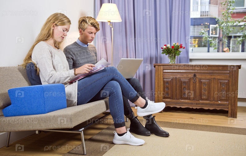 Молодая пара на диване