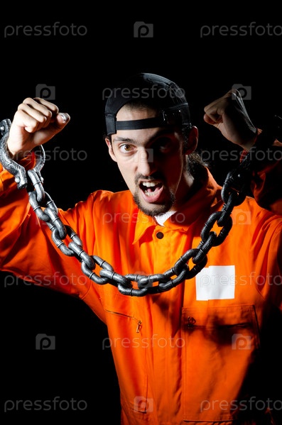 Заключенный, закованный в цепи, черный фон