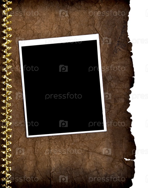 Старая фоторамка лежит на фоне коричневой бумаги