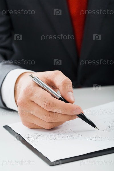 Мужская рука рисует схему бизнес-процесса на бумаге