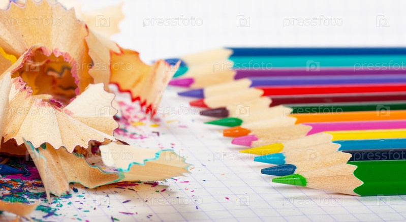 Карандаши и опилки крупным планом