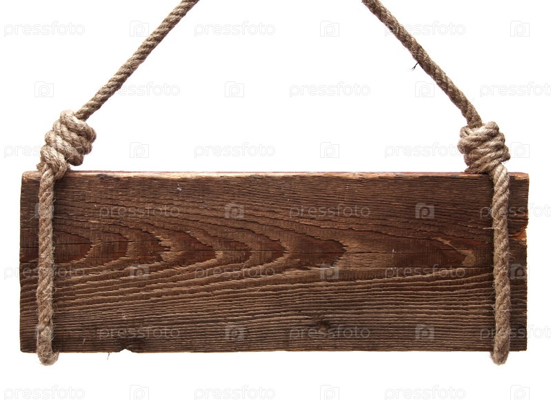 Деревянная вывеска на веревке