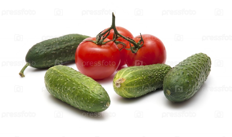 Огурцы и томаты на белом фоне