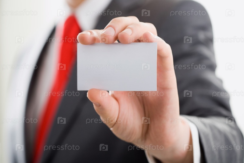 Бизнесмен показывает свою визитную карточку
