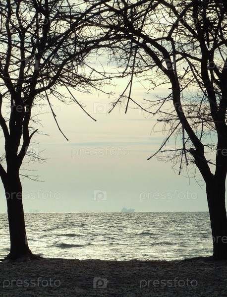 Вид на море между деревьев