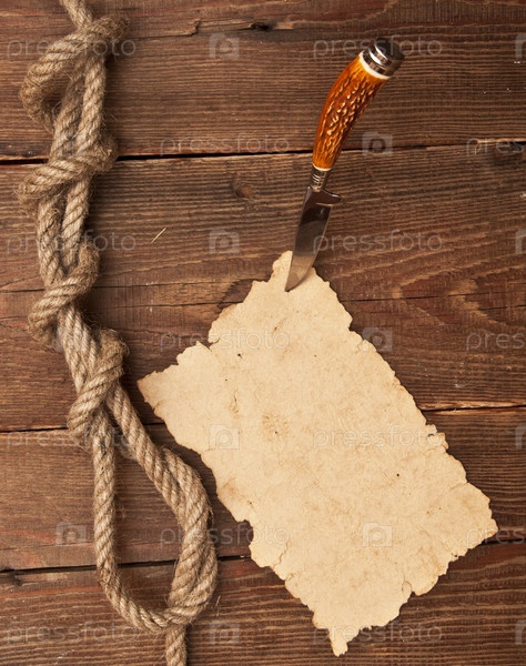 Нож, держащий старый холст на стене, и пеньковая веревка