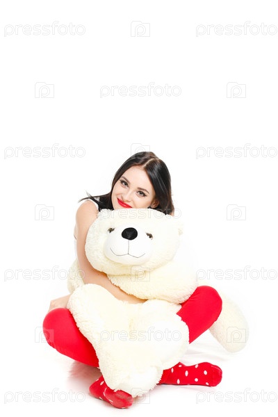 Красивая женщина с плюшевым мишкой