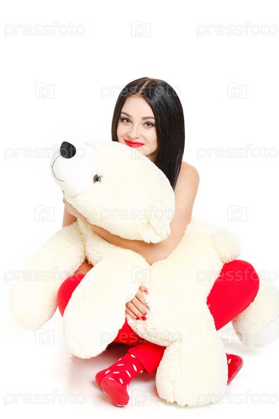 Красивая женщина с плюшевым мишкой
