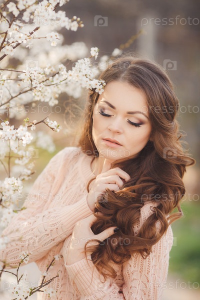 Красивая девушка в саду весной