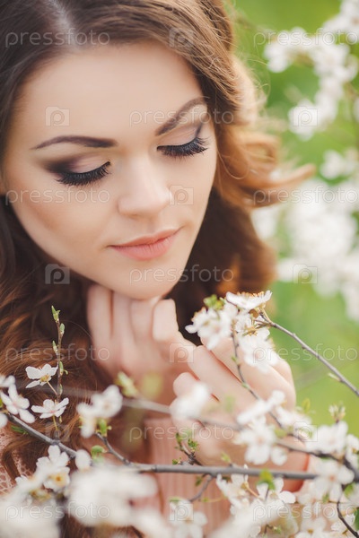 Красивая девушка в саду весной