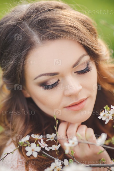 Красивая девушка в саду весной