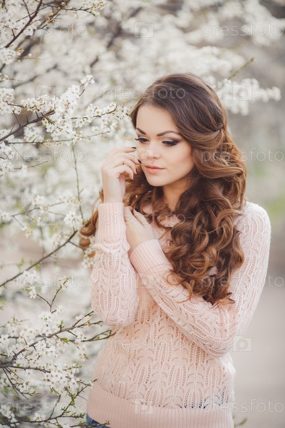 Красивая девушка в саду весной