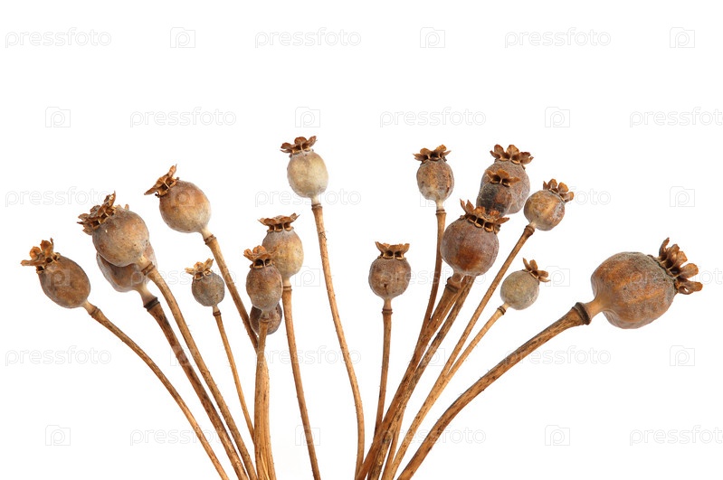 Головки мака на белом фоне